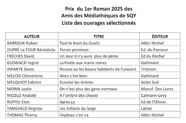 Voyez ci-dessous la liste des romans en compétition pour 2024-2025